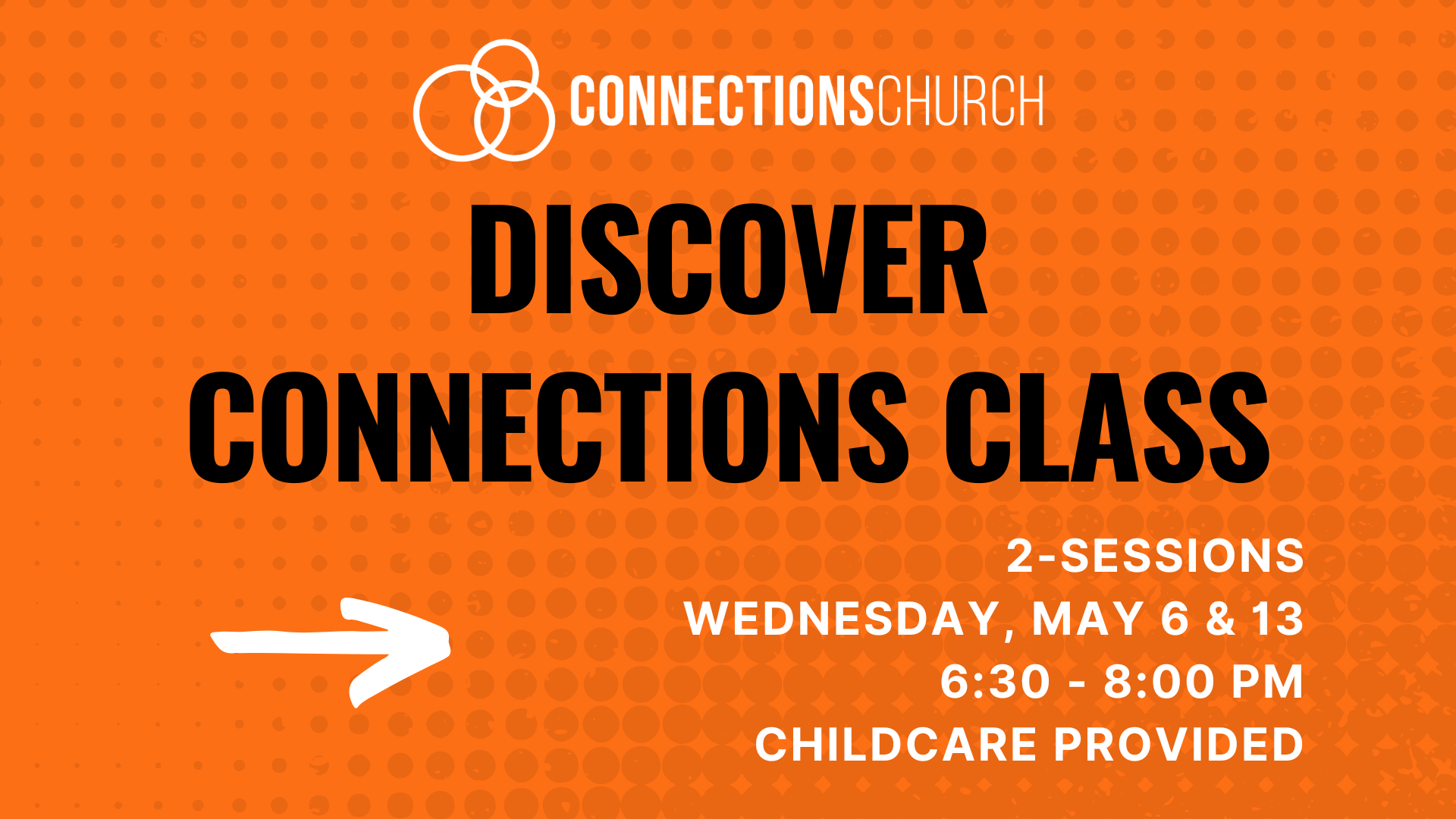 Discover Connections is 2 sessions long, from 6:30 - 8:00 PM. Childcare will be provided.